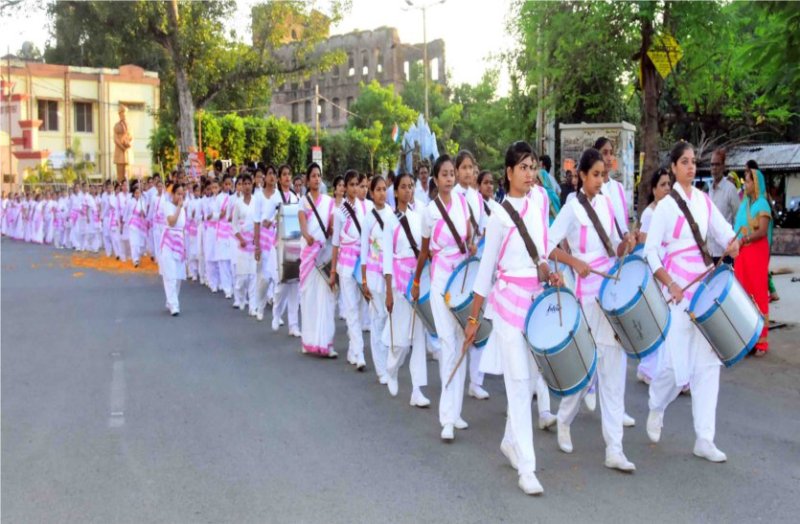 उदबोधन व प्रार्थना बाद पथ संचलन निकला, जो लोकमान्य टिळक विद्यालय परिसर से तीन बत्ती, फ्री गंज, शहीद पार्क होते हुए बॉम्बे स्टील के सामने से होकर सिंधी कॉलोनी से विवेकानंद कॉलोनी होते हुए विवेकानंद पार्क से होकर पुनः विद्यालय परिसर पर सम्पन्न हुआ । पूरे मार्ग में विभिन्न स्थानों पर पुष्प वर्षा से स्वागत किया गया। संचलन में 550 की संख्या में महिलाओं,युवतियां व नन्ही बहने भी शामिल थी। व्यक्तिगत गीत लीना श्रीवास ने लिया। मंच संचालन आस्था पांडे द्वारा किया गया।