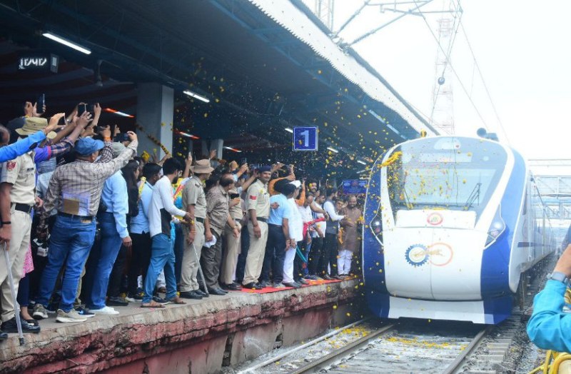 सीहोर से उज्जैन तक ञ्च ललित सक्सेना. ११० किमी प्रतिघंटे की हाई स्पीड और अत्याधुनिक तकनीक से लबरेज दो वंदे भारत ट्रेनों का शुभारंभ मंगलवार सुबह प्रधानमंत्री नरेंद्र मोदी ने भोपाल में किया।रिमझिम फुहारों के बीच भोपाल-जबलपुर और भोपाल-इंदौर ट्रेनों को पीएम मोदी ने हरी झंडी दिखाकर देश को नई अनूठी सौगात दी। ट्रेन का नियमित संचालन 28 जून से शुरू होगा। उज्जैन आगमन पर शंख ध्वनि, पुष्प वर्षा और ढोल-ताशों के साथ ट्रेन का जोरदार स्वागत हुआ।