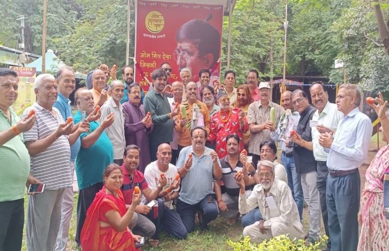 ,,Ujjain: तरण ताल स्थित ओम व्यास के ठिये पर ठहाकों की मस्ती के लिए जुटे साहित्यकार, व्यंग्यकार, कवि और ओम व्यास ओम के साथी।