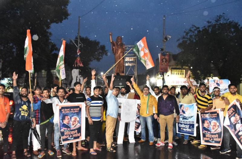 रफाल सौंदे को लेकर सड़क पर कांग्रेसी, बारिश में किया ऐसा प्रदर्शन