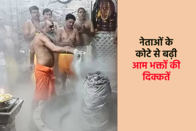 उज्जैन के महाकाल मंदिर में प्रोटोकॉल और वीआईपी कल्चर का जमकर विरोध हो रहा है लेकिन व्यवस्थाएं बदल नहीं रहीं हैं। यहां राजनेताओं का वर्चस्व फिर बढ़ गया है। भस्म आरती में नेताओं का कोटा बहाल कर दिया गया है। बुरी बात यह है कि इससे आम जनता की सैंकड़ों सीटें कम हो गई हैं।
