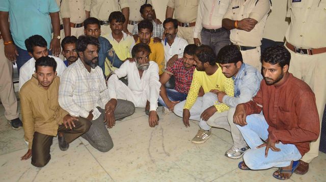 शाकिर (35) पिता सरदार शेख निवासी चतुरखेड़ी, राजेंद्र(33)पिता दरबार सिंह निवासी बरौड़ीखेड़ा, किशोर (25) पिता महेश मीणा निवासी शुजालपुर, राधेश्याम(32) पिता गोरधन नायक निवासी देवास, दिनेश(28) पिता शंकरलाल गुर्जर निवासी शाजापुर, जावेद(24) पिता शहजाद खान निवासी तराना, जवाहर (25) पिता जगदीशचंद्र राठौर निवासी तराना, जुनैद(27) पिता जलील शाह निवासी तराना, शाकिर(32) पिता सबरिस्तान निवासी तराना, इंदर(58) पिता दुलेंसिंह राजपूत निवासी दिलौदी, कमल(33) पिता रघुनाथ सिंह सौंधिया निवासी लसुडिय़ा हमीर, हरिनारायण (35) पिता लालजीराम शर्मा निवासी माकड़ौन, सलीम(26) पिता रफीक निवासी तराना, महेश(30) पिता मांगीलाल चंदेल निवासी शाजापुर को गिरफ्तार किया गया है।