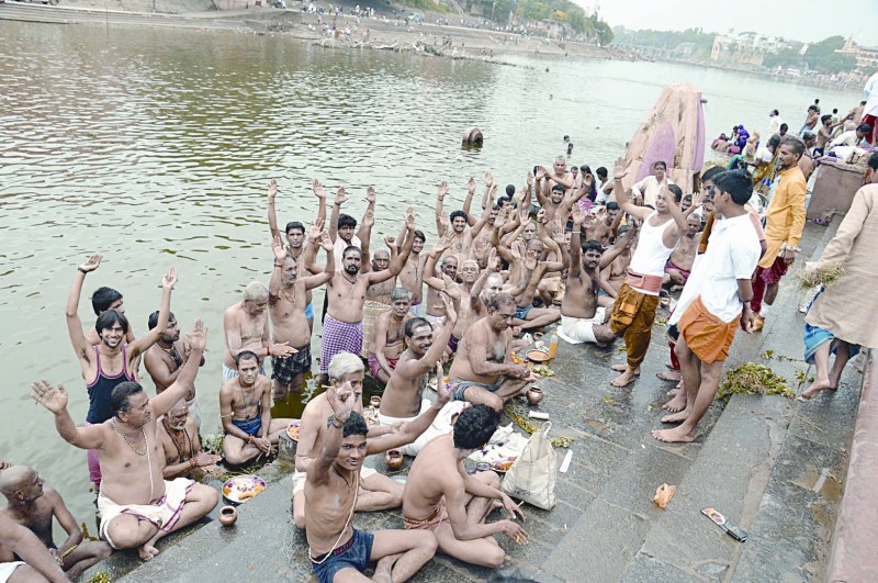 श्रावण की पूर्णिमा पर ब्राह्मण समाज की ओर से श्रावणी उपाकर्म किया गया। शनिवार को औदिच्य ब्राह्मण समाज, गुर्जर गौड़ ब्राह्मण समाज आदि ने रामघाट पर हेमाद्रि संकल्प व दश विधि स्नान के बाद भस्म धारण करते हुए जनैऊ धारण की। तीर्थ पुरोहित संघ के मीडिया प्रभारी पं गौरव उपाध्याय ने बताया सुबह सूर्य को जल अपर्ण कर करीब 450 लोगों ने हेमाद्रि संकल्प के साथ दश विधि स्नान कर पंचगत्य, पंचामृत से देव ऋषि, पितृ का तर्पण कर भस्म धारण की। भगवान गणेश का पूजन और फिर अरुंधति व सप्तऋषि का पूजन किया। इसके साथ ही वंशावली नूतन जनेऊ का पूजन कर नई जनेऊ (यज्ञोपवित) धारण की। इस दौरान औदिच्य ब्राह्मण समाज के उमाकांत शुक्ल, गुर्जर गौड़ समाज के केदारनाथ शुक्ल, महेंद्र दत्त शास्त्री, राम शुक्ल उपस्थित थे। रामानुजकोट आश्रम में स्वामी रंगनाथाचार्य के सान्निध्य में आश्रम के बटुकों ने भी श्रावणी उपाकर्म किया। इसी क्रम में महाकाल मंदिर प्रबंध समिति की ओर से संचालित वैदिक प्रशिक्षण व शोध संस्थान द्वारा श्रावणी उपाकर्म एवं वेद पूजन किया गया। शनिवार सुबह 7 बजे रामघाट पर संस्थान के बटुकों व आचार्यों ने वैदिक मंत्रों के आह्वान, स्थापना, दशविधि स्नान कर जनैऊ धारण की। इस अवसर पर संस्कृति भारती के मालवा प्रांत संगठन मंत्री प्रमोद पंडित, डॉ. तुलसीदास परौहा, मंदिर प्रशासक आरपी तिवारी, सहायक प्रशासनिक अधिकारी प्रीति चौहान आदि उपस्थित थे।