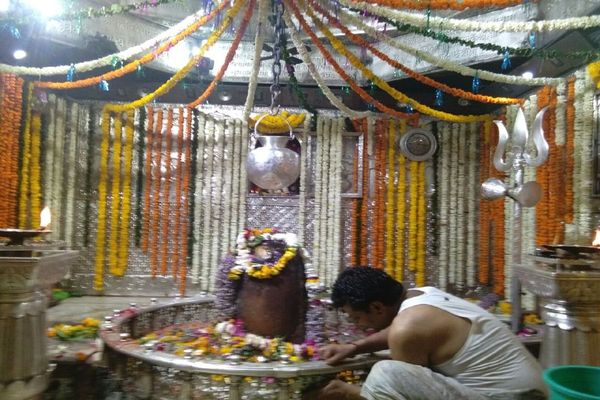 शिव नवरात्रि पर्व के लिए नंदीगृह में फूलों से सजावट की गई है