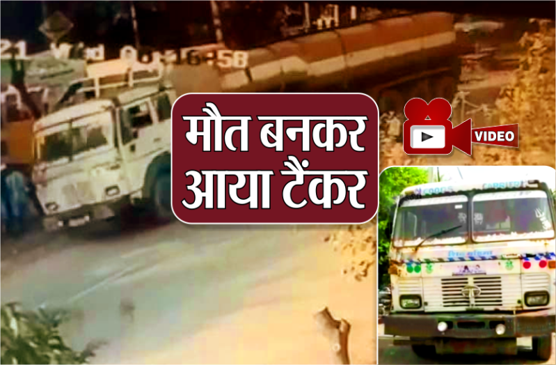 उज्जैन. मध्य प्रदेश के उज्जैन स्थित ताजपुर चौपाटी चौराहे पर तेल के टैंकर ने बुधवार शाम एक बाइक सवार को रौंद दिया। बाइक सवार की घटनास्थल पर ही मौत हो गई। घटना के बाद टैंकर ड्राइवर ने भागने की कोशिश की, लेकिन ग्रामीणों द्वारा उसे पकड़ लिया गया। बाद में पुलिस टैंकर ड्राइवर को गिरफ्तार कर टैंकर जब्त कर लिया है। युवक की मौत का वीडियो चौराहे पर लगे CCTV कैमरे में भी कैद हो गई। बता दें कि, वीडियो गुरुवार को सामने आया है।