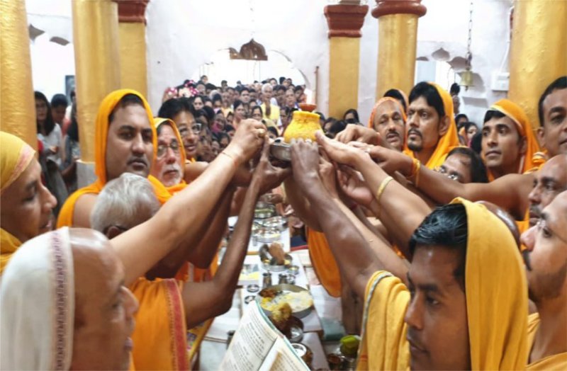 जिन शासन की कीर्ति पताका को फहराने वाली ध्वजा को शिखर पर आरोहित करने का सौभाग्य नमकमंडी जिनालय में हितेश समताजी कासलीवाल, सुशीला देवी, शीतल पांडे परिवार व अतिशय क्षेत्र जयसिंहपुरा जिनालय में मनीष जैन जैसवाल परिवार को प्राप्त हुआ।