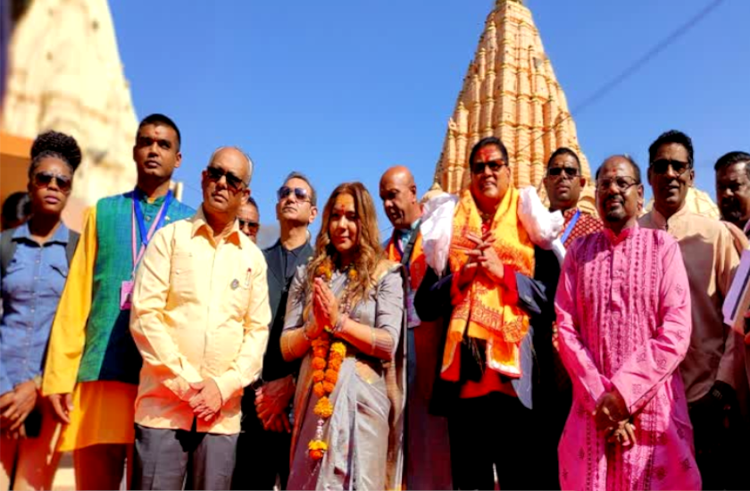 मध्य प्रदेश के आर्थिक शहर इंदौर में इन दिनों प्रवासी भारतीय सम्मेलन चल रहा है। इस सम्मेलन में दुनियाभर से विदेशी मेहमान शामिल हुए हैं। खास बात ये है कि, यहां पहुंचने वाले कई प्रवासी मेहमान उज्जैन के महाकालेश्वर मंदिर में दर्शन करने भी पहुंच रहे हैं। इन्हीं में से एक नाम है सूरीनाम के राष्ट्रपति चंद्रिका प्रसाद संतोखी का। रविवार को राष्ट्रपति संतोखी अपने परिवार के साथ महाकाल की नगरी उज्जैन पहुंचे। यहां न सिर्फ उन्होंने बाबा महाकाल के दर्शन किए, बल्कि रुद्राभिषेक पाठ भी किया। इसके बाद उन्होंने ई - कार्ट की मदद से महाकाल लोक का भ्रमण भी किया।