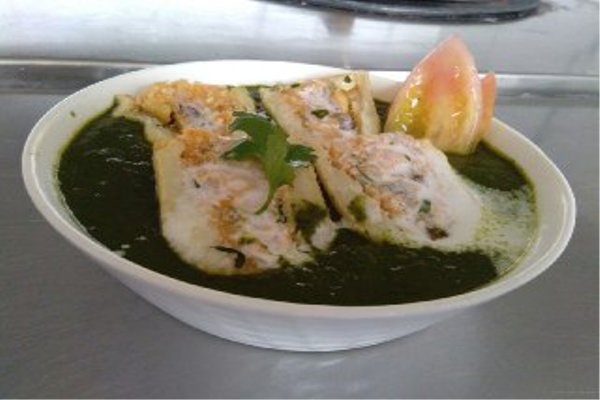 उज्जैन को यह अनोखा स्वाद चखाने का काम कर रहा है इंदौर रोड फोरलेन स्थित होटल अंजूश्री। यहां के एक्जीक्यूटिव शेफ राकेश बघेल बताते हैं यह उनके यहां की खास रेसिपी है। इसे बनाने के लिए छोटे आकार के आलू की जरूरत होती है। सबसे पहले आलू को छील लें और बीच में से पिल (गुदा निकाल लें) कर खोखला कर लें। अब इसे थोड़ा सा उबालने के बाद फ्राय कर लें। अब इसकी स्टफिंग के लिए कद्दूकस किए आलू, पनीर, और ड्रायफ्रूट में नमक और लाल मिर्च डालकर मिश्रण तैयार कर लें। इसे आलू में भर लें। अब गैस पर फ्राइंग पैन रखें। इसमें घी डालें। जब घी गर्म हो जाए तो इसमें जीरे का तड़का लगाएं। इसके बाद इसमें बारीक कटा प्याज, टमाटर और हरी मिर्च डालकर थोड़ी देर पकाएं। इसके बाद इसमें पालक का पेस्ट और प्याज की ग्रेवी भी डालें।