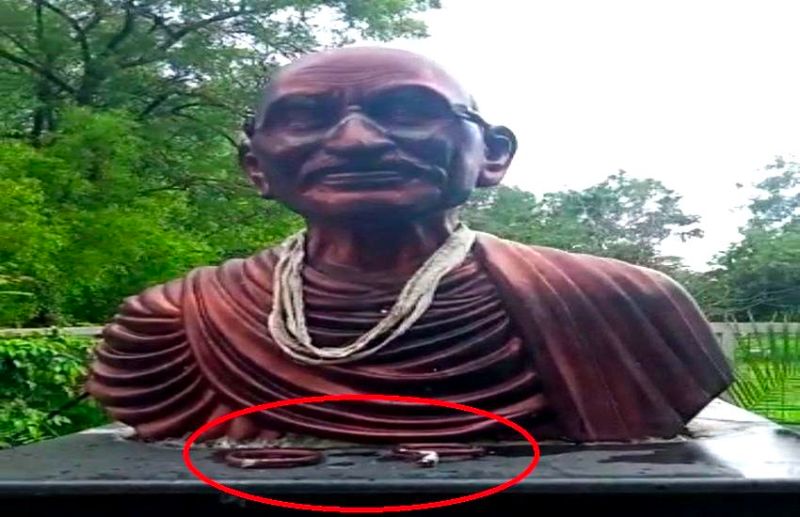 गोडसेवादी विचारधारा के लोगों ने मूर्ति के साथ छेड़छाड़ की
