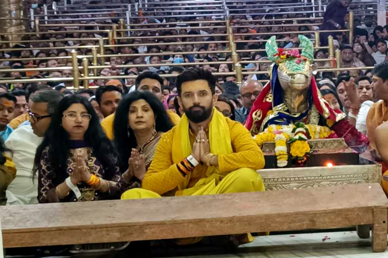 महाकाल के दरबार में केंद्रीय मंत्री चिराग पासवान शिव का जाप करते हुए नजर आए। वहीं, मंदिर के पुजारी महेश शर्मा ने उन्हें तिलक लगाकर फूल की माला अर्पित की। साथ ही विधि-विधान से महाकाल की पूजा संपन्न कराई मंदिर प्रबंध समिति की ओर से सहायक प्रशासनिक अधिकारी आर.पी. गहलोत और आशीष दुबे ने पासवान का सम्मान भी किया गया।