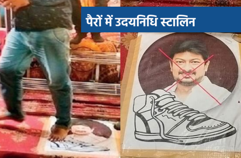 उज्जैन के एक गणेश पंडाल में तमिलनाडु सरकार के मंत्री उदयनिधि स्टालिन का अनूठा विरोध किया गया। गणेश पंडाल के पैरपोछ (डोरमैट) पर स्टालिन का फोटो लगा गिया। लोगों को इस पर से गुजरकर निकलना पड़ रहा है। आयोजकों की मंशा है कि सनातन धर्म को लेकर गलत बयानबाजी के आरोपी स्टालिन के चित्र से पैर पोछकर श्रद्धालु गणेश पंडाल में प्रवेश करें।