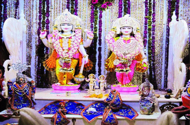उज्जैन. मालीपुरा स्थित सौ साल पुराने मंदिर के जीर्णोद्धार के तहत नई प्रतिमाओं की प्रतिष्ठा बुधवार को की गई। सुबह ११ बजे लक्ष्मी-नारायण सहित नौ नारायण की प्रतिमाओं की विधि विधान से प्रतिष्ठा की गई। जयकारों के बीच इन प्रतिमाओं को विराजमान किया और ५६ भोग लगाए। वहीं शाम को १००८ दीपों से मंदिर को सजाया गया। सफेद मॉर्बल के इस मंदिर की आभा देखते ही बन रही थी। श्री संयुक्त रामी गुजराती माली समाज की ओर से आयोजित पांच दिवसीय महोत्सव के समापन पर रात को आतिशबाजी भी की गई। इससे पहले दोपहर में समाज की धर्मशाला में भंडारा हुआ। करीब ३ हजार लोगों ने भोजन प्रसादी का लाभ लिया। समाज अध्यक्ष पुरषोत्तम पटेल व समिति अध्यक्ष सत्यनारायण चौहान के अनुसार समाज के लोगों के सहयोग से १ करोड़ रुपए में मंदिर का जीर्णोद्धार कराया गया है।