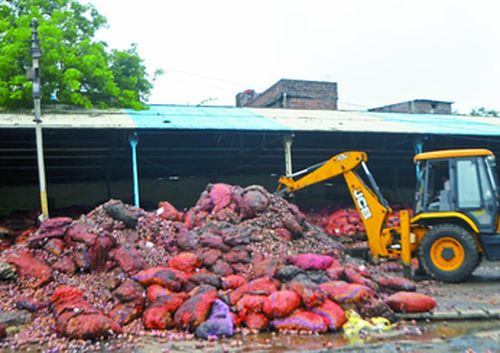 सोमवार को प्याज की बदबू से मंडी के कुछ हम्मालों को उलटी हो गई। मंडी के गेट के समीप संचालित न्यू लूक कॉन्वेंट स्कूल के बच्चे को भी परेशान होना पड़ा। जिसके चलते स्कूल प्रबंधन ने विद्यालय की छुट्टी कर दी। इधर मंडी में रखा प्याज को उठाने के लिए ठेकेदार ने प्याज की छटनी की है। लगभग 500 क्विंटल खराब प्याज को जेसीबी से नष्ट किया गया। इन प्याज को अब शहर से बाहर फेंका जाएगा। मंडी परिसर में लगभग 5 हजार क्विंटल प्याज का स्टॉक है। जिसको उठाने का ठेका इंदौर के एक ठेकेदार ने लिया। ठेकेदार द्वारा लगभग 50 मजदूरों के माध्यम से प्रतिदिन प्याजों की छटनी की जा रही है।