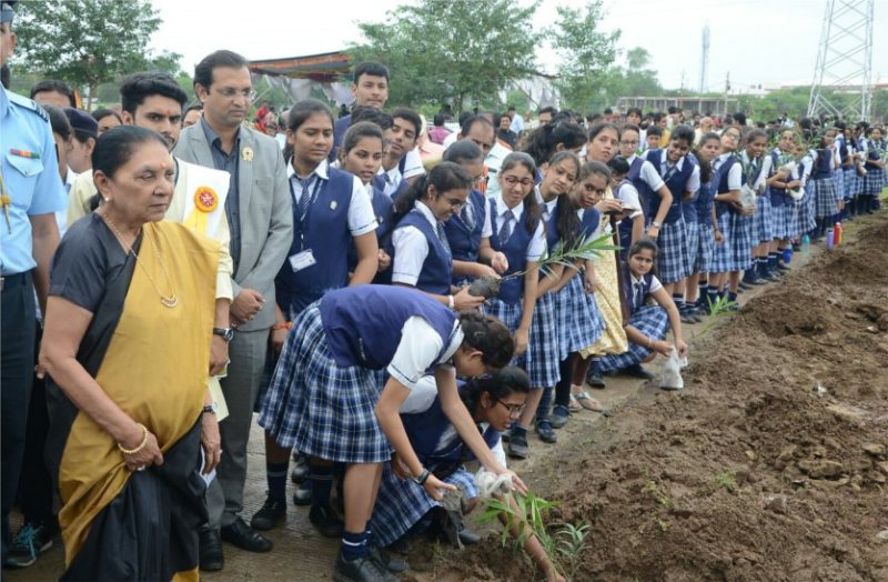 राज्यपाल आनन्दीबेन पटेल ने कहा कि ऋग्वेद में स्पष्ट कहा गया है कि वनस्पतियों का रोपण करो, जिससे अधिकाधिक वनों का विस्तार हो सके। वहीं यजुर्वेद में जल को प्रदूषित नहीं करने, पेड़ों को नहीं काटने, प्राकृतिक पदार्थों का अंधाधुंध दोहन नहीं करने को कहा गया है। उन्होंने कहा कि हमारी संस्कृति संस्कृत के बिना संभव नहीं है। इसमें मां-बेटी का सम्बन्ध है। संस्कृत मां है और उसकी बेटी संस्कृति है। हमें सिर्फ वृक्षारोपण ही नहीं करना है। हमारा सबसे बड़ा कतज़्व्य रोपे गये पौधों की सुरक्षा और संवद्र्धन करना है। जब तक पौधे अच्छी तरह बड़े न हो जाएं, तब तक हमें उनकी देखभाल करना चाहिए।