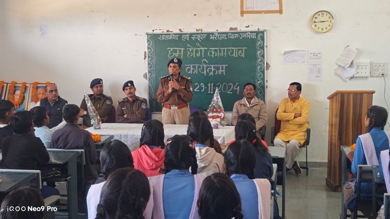 शासन के निर्देशानुसार 25 नवंबर से हम होंगे कामयाब पखवाडा की शुरुआत की गई है जो 10 दिसंबर तक चलेगा। इसका उद्देश्य महिलाओं की सुरक्षा एवं लैंगिक समानता को बढ़ावा देना है। शासन की मंशानुरूप उमरिया पुलिस द्वारा हम होंगे कामयाब पखवाड़ा अंतर्गत जिले के विभिन्न स्कूलों में जागरूकता कार्यक्रम किए जा रहे हैं। कार्यक्रम के दौरान बालक बालिकाओं को साइबर फ्रॉड, पॉक्सो एक्ट, बाल विवाह, घरेलू हिंसा, महिला संबंधी अपराध के संबंध जानकारी देते हए जागरूक किया जा रहा है ।
