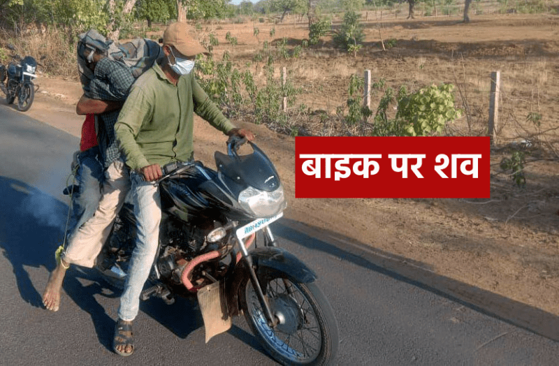 परिजन शव वाहन के लिए गिडगिडाते रहे लेकिन किसी ने न सुनी। बाद में परिजन शव को रस्सी से बांधकर बाइक से लेकर घर तक पहुंचे।