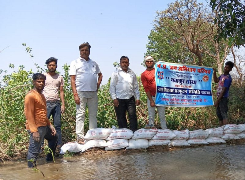 प्रदेश शासन के आव्हान पर जल गंगा संवर्धन अभियान के साथ ही जिले में भी अपनी मिट्टी अपना जल को संरक्षित करने के लिए जन सहयोग के माध्यम से बोरी बंधान के कार्यक्रम आयोजित किए जा रहे हैं। मध्य प्रदेश जन अभियान परिषद के मार्गदर्शन में एवं ब्लाक समन्वयक के निर्देशन में ग्राम भरौली के खजुरा नाला में 32 बोरियों का बोरी बंधान किया गया एवं जल को संरक्षित रखने का संदेश दिया गया।