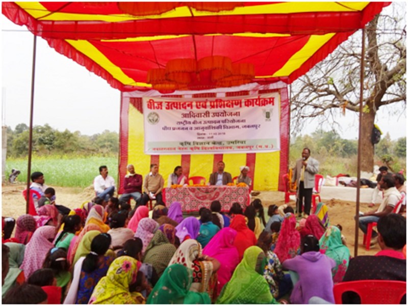 उमरिया. आदिवासी उपयोजना के अंतर्गत विकासखंड करकेली के ग्राम ताली में जवाहरलाल नेहरू कृषि विश्वविद्यालय जबलपुर के पौध प्रजनन विभाग के प्रमुख वैज्ञानिक डॉ. आर एस शुक्ला एवं वरिष्ट वैज्ञानिक संजय सिंह की उपस्थिति में एक दिवसीय कार्यशाला का आयोजन किया गया। कार्यक्रम में उपस्थित केन्द्र के वरिष्ठ वैज्ञानिक एवं प्रमुख डॉ के.पी. तिवारी ने कार्यशाला का उद्देश्य बताते हुये कहा कि विश्वविद्यालय के मार्गदर्शन में आदिवासी उपयोजना अंतर्गत केन्द्र द्वारा ग्राम ताली, सलैया, धौरखोह एवं कछरवार के आदिवासी कृषकों को गेहूं प्रजाति जे. डब्ल्यू 3338, 3211, जी. डब्ल्यू 366, चना प्रजाति जे.जी. 74 मटर किस्म पी 885, जे.एम. 8 आदि किस्मों के प्रजनक बीज 80 कृषकों को नि:शुल्क वितरित किये गये थे। इसी संदर्भ में यह एक दिवसीय कार्यशाला का आयोजन किया जा रहा है, जिससे कि कृषकों में बीज के प्रति जागरूकता आ सके। कार्यक्रम में उपस्थित प्रमुख वैज्ञानिक डॉ. आर. एस. शुक्ला ने उपस्थित कृषकों को बीज पर आत्म निर्भर होने के लिय कहा एवं विश्वविद्यालय द्वारा दिये गये बीज को क्षेत्र में फैलाने की बात कही, वहीं उपस्थित डॉ संजय सिंह ने गेहंू में कण्डवा रोग की रोगथाम के उपाय बताये, केन्द्र के वैज्ञानिक डॉ. के.व्ही. सहारे ने मंच संचालन करते हुए विश्वविद्यालय से अनुरोध किया कि जिले के आदिवासी कृषकों के लिए आने वाले समय मेें भी इस तरह के कार्यक्रम किये जाये। जिससे जिले के कृषकों के पास अच्छी किस्म के बीज उपलब्ध हो सके एवं अंत में आभार प्रदर्शन भी किया गया। कार्यक्रम में केन्द्र के अन्य वैज्ञानिक डॉ आर. आर. सिंह, विवेक वाल्के एवं लगभग 150 महिला-पुरूष कृषक उपस्थित थे। इसी संदर्भ में यह एक दिवसीय कार्यशाला का आयोजन किया जा रहा है, जिससे कि कृषकों में बीज के प्रति जागरूकता आ सके।