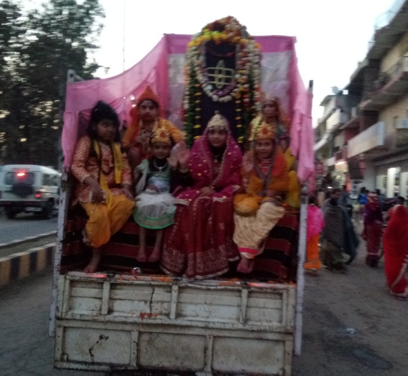 उमरिया.महाशिवरात्रि के पावन पर्व पर शहर के सामुदायिक भवन से शिव की बारात निकाली गयी। शिव की बारात में सैकड़ों की संख्या में श्रद्धालु शामिल हुए। बारात नगर के विभिन्न मार्गो से होते हुये सगराधाम पहुंची। इस अवसर पर ढ़ोल नगाड़े के बीच शिव के बारात में लोगों ने नाचते व झूमते हुये बम बम भोले के जय घोष करते रहे। वहीं कुछ लोग भूत के वेश में बनकर बारात में शामिल हुये। इसमें शिव और शक्ति का मिलन दिखाते हुये ब्रम्हा कुमारी आश्रम द्वारा आकर्षक झांकी का प्रदर्शन किया गया। जिसे नगर के लोगों द्वारा सराहा गया। साथ ही कण-कण में नृत्यरत नटराज के गण बड़ी संख्या में उछलते कूदते खुशी मनाते हुये निकले।