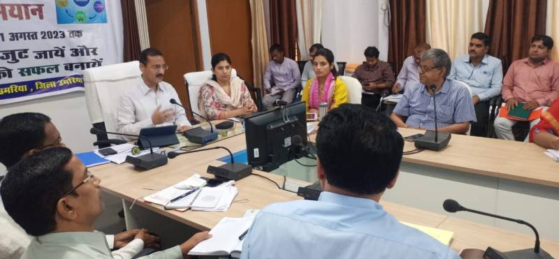 उमरिया. स्कूल चले हम अभियान की समीक्षा करते हुए कलेक्टर डा. कृष्ण देव त्रिपाठी ने शत प्रतिशत बच्चों को कक्षा 1 में प्रवेश दिलाने के निर्देश दिए है। उन्होंने कहा कि 1 जुलाई से विधिवत रूप से शैक्षणिक सत्र प्रारंभ हो चुका है। शासन द्वारा शिक्षकों के स्कूल पहुंचने का समय प्रात: 10 बजे तथा स्कूल छोडऩे का समय सायं 5 बजे निर्धारित किया गया है। सभी शिक्षक समय पर स्कूल पहुंचें तथा छोड़ें। स्कूल में उपस्थित रहने के दौरान शैक्षणिक गतिविधियों को व्यवस्थित रूप से संचालन करें।