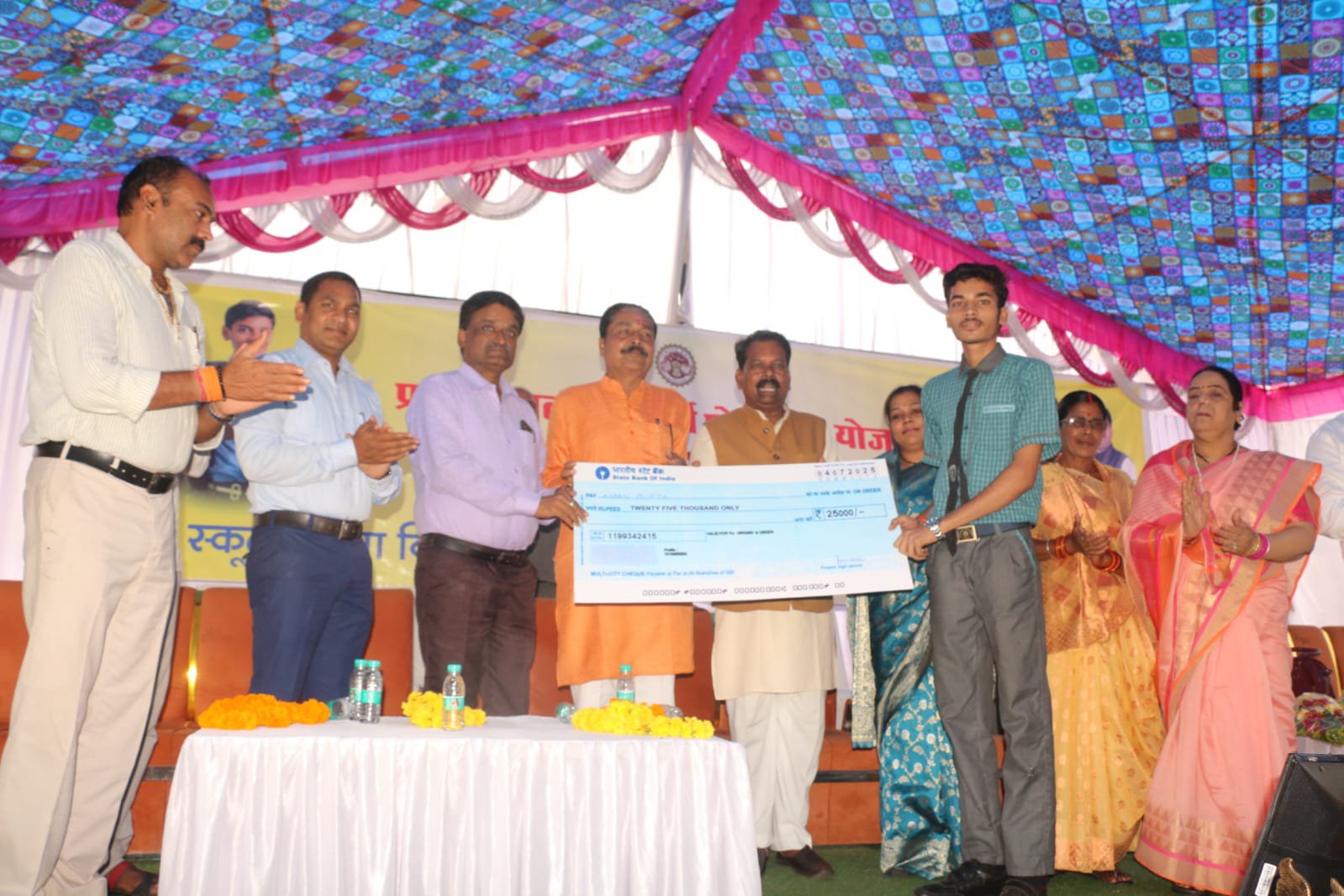 कार्यक्रम के दौरान जिले के 429 बच्चों के खाते में 25 हजार रूपये के मान से 10,725,000 रूपए की राशि सिंगल क्लिक से अंतरित हुई है , जिनमें छात्राओं की संख्या 233 एवं एवं छात्रों की संख्या 196 है। कार्यक्रम में जिला पंचायत अध्यक्ष अनुजा पटेल ने कहा कि बच्चे अपने लक्ष्य को निर्धारित करते हुए उसकी तैयारी करेंगे तो निश्चित रूप से सफलता मिलेगी। विभिन्न योजनाओं का लाभ देकर बच्चों के भविष्य को सजाने एवं संवारने का कार्य निरंतर रूप से किया जा रहा है। सभी बच्चे योजनाओं का लाभ उठाएं और आगे बढ़ें। कलेक्टर धरणेन्द्र कुमार जैन ने कहा कि विगत वर्ष की भांति इस वर्ष कक्षा 10 वीं एवं 12 वीं के रिजल्ट में उत्तरोत्तर प्रगति हुई है। प्रगति के लिए समय समय पर शिक्षकों का प्रशिक्षण आयोजित किया गया। प्रशिक्षण का परिणाम रहा कि इस वर्ष जिले का रिजल्ट पांच सालों में सर्वोत्तम रहा। उन्होंने कहा कि मेहनत के माध्यम से सफलता को अर्जित किया जा सकता है। आशुतोष अग्रवाल ने कहा कि प्रतिभाशाली विद्यार्थी प्रोत्साहन योजना के तहत लैपटॉप के लिए 25 हजार रूपये की राशि छात्रों के लिए किसी वरदान से कम नही है। आप सभी का भी कर्तव्य है कि मन लगाकर पढ़ाई करें और उच्च पदों पर पहुंचकर अपने माता, पिता , स्कूल का नाम रोशन करें। प्रदेश के मुख्यमंत्री डा मोहन यादव के मुख्य आतिथ्य में कुशाभाऊ ठाकरे सभागार में आयोजित प्रतिभाशाली विद्यार्थी प्रोत्साहन योजना का राज्य स्तरीय कार्यक्रम जिले में देखा एवं सुना गया। कार्यक्रम के अंत में सौम्या सिंह, हीनू पाल, अमन गुप्ता, हिमांशु राय को मुख्य अतिथि सहित अन्य अतिथियों व्दारा 25-25 हजार रूपये का प्रतीक स्वरूप डमी चेक प्रदान किया गया।