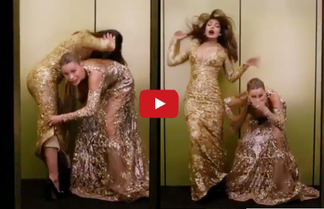 इस समारोह के वक्त उनका एक वीडियो सामने आया है जो सोशल मीडिया पर काफी वायरल हो रहा हैं। ये वीडियो अवॉर्ड फंक्शन से पहले का बताया जा रहा हैं। जिसमें प्रियंका लिफ्ट के अंदर एक हॉलीवुड एक्ट्रेस के साथ अजीबोगरीब हरकतें करती नजर आ रही हैं। जैसा ही उन्हें पता चलता है कि वे कैमरे में कैद हो चुकी हैं तो खुद को संभालते हुए वापस पोज देने लगती हैं। वैसे इस वीडियो के देखकर आप कुछ गलत सोचे हम आपको बता दें कि प्रियंका और सोफिया का ये वीडियो दर्शकों के मनोरंजन के लिए इस तरह शूट किया गया था।