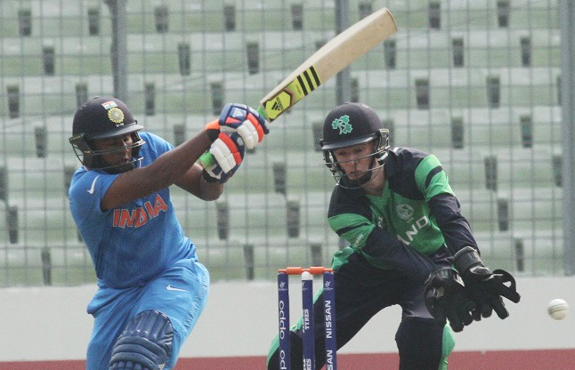 मीरपुर (ढाका)। टीम इंडिया ने गुरुवार को शेर-ए-बांग्ला स्टेडियम में खेले गए अंडर-19 वर्ल्ड कप के अपने पहले गु्रप मैच में आयरलैंड को 79 रन से हरा दिया। अंडर-19 टीम के बल्लेबाज सरफराज खान ने 70 बॉल में 74 रनों की विस्फोटक पारी खेली। लेकिन 74 रनों की विस्फोटक पारी खेलने के बावजूद सरफराज निराश नजर आए। वे चाहते थे कि मजबूत शुरूआत के बाद उनकी फिफ्टी बड़े स्कोर 100-150 रनों में तब्दील हो। इससे साफ जाहिर होता है कि सरफराज के दिल में बड़ा स्कोर बनाने की भूख है। सरफराज ( 74) और वाशिंगटन (62) ने 17.2 ओवर में 110 रन की साझेदारी की जिससे भारत ने निर्धारित 50 ओवरों में नौ विकेट पर 268 रन बनाए।