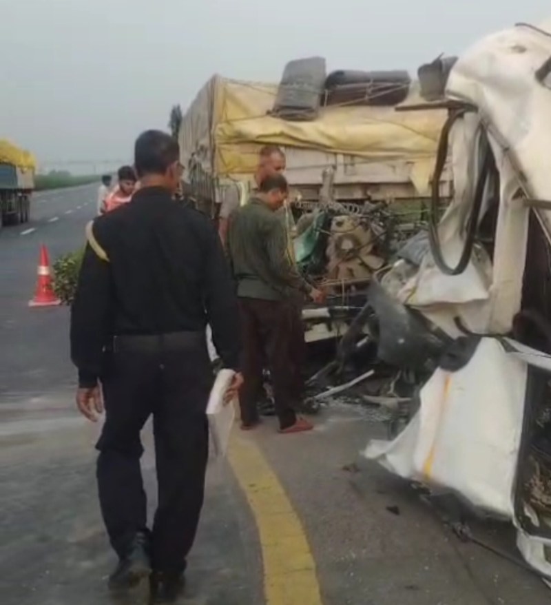 Agra Lucknow Expressway horrific accident आगरा लखनऊ एक्सप्रेसवे पर भीषण हादसा हो गया। जब पंचर ट्रक का पहिया बदल रहे ड्राइवर और क्लीनर को ट्राला ने टक्कर मार दी। टक्कर कितना जबरदस्त था कि ड्राइवर और क्लीनर की मौके पर ही मौत हो गई। जबकि ट्राला का ड्राइवर की केबिन में ही फंस गया। जिसे घंटों मशक्कत के बाद निकाला गया। लेकिन तब तक उसकी भी मौत हो चुकी थी। अपर पुलिस अधीक्षक दक्षिणी ने बताया कि तीनों की ही पहचान नहीं हो पाई है। शिनाख्त के प्रयास किया जा रहे हैं। घटना बांगरमऊ कोतवाली क्षेत्र की है।