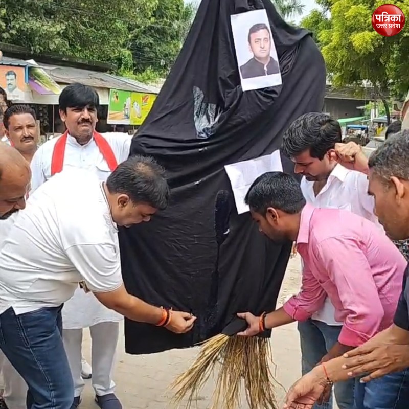 समाजवादी पार्टी के राष्ट्रीय अध्यक्ष व कन्नौज सांसद अखिलेश यादव ने मठाधीशों की तुलना अपराधियों से की थी। इस पर संत समाज में जबरदस्त आक्रोश है। बीजेपी का आरोप है कि अखिलेश यादव लगातार जन विरोधी, गलत और अपशब्द बयान बाजी कर रहे हैं। जिसको लेकर भारतीय जनता पार्टी में जबरदस्त आक्रोश है। सदर विधायक पंकज गुप्ता ने आज अपने कैम्प कार्यालय में अखिलेश यादव का पुतला फूंका। इस दौरान जमकर नारेबाजी हुई। अखिलेश यादव मुर्दाबाद के नारे लगे।