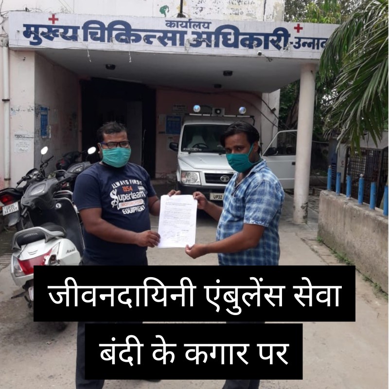 उन्नाव. जीवीके कंपनी ने जीवनदायिनी एंबुलेंस सेवा के चालकों को नौकरी से हटाने का निर्णय लिया है। इस संबंध में उन्होंने सभी एंबुलेंस चालकों को नोटिस भेजकर आगामी 16 अक्टूबर से सेवाएं बंद करने की जानकारी दी है। एंबुलेंस चालकों में जीवीके कंपनी से नोटिस मिलने के बाद आक्रोश व्याप्त है। उन्होंने कहा कि एक तरफ कंपनी लगातार उनसे वार्ता कर रही है। दूसरी तरफ 102, 108, एडवांस लाइफ सपोर्ट सिस्टम को बंद करने का कुचक्र रच रही है। जबकि कोरोना कॉल में उन लोगों को कोरोना योद्धा मानते हुए सम्मानित किया गया था। डीएम और सीएमओ को दिए ज्ञापन में जीवनदायिनी 102, 108, एएलएस कर्मचारी संघ ने अपनी मांगों को रखते हुए कहा है कि एंबुलेंस चालकों को एनएचएम में समायोजित कर दिया जाए।