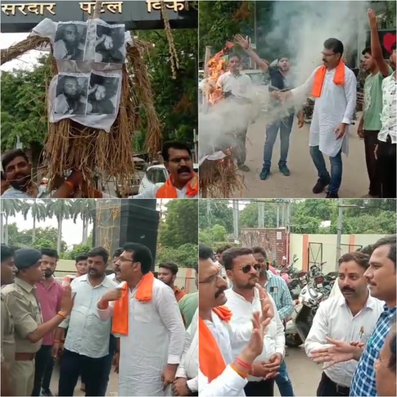 उदयपुर की घटना को लेकर हिंदू संगठनों में आक्रोश, फूंका पुतला