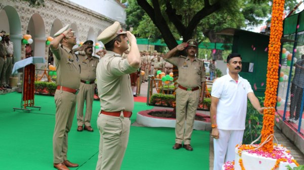 पुलिस लाइन में तिरंगा फहराया गया इस मौके पर पुलिस अधीक्षक सिद्धार्थ शंकर मीना ने सलामी दी