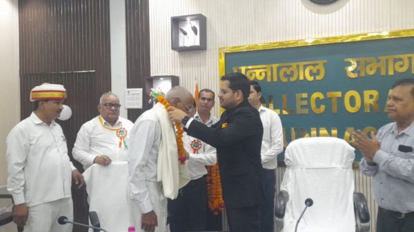 कलेक्ट्रेट में स्वतंत्रता संग्राम सेनानियों को माला और अंग वस्त्र देकर सम्मानित किया गया