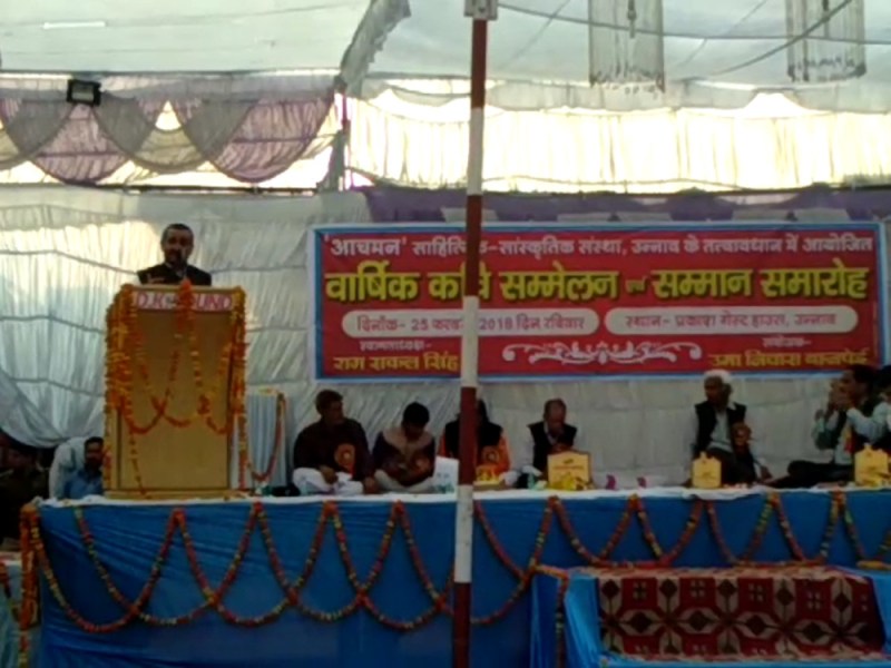 उन्नाव. उन्नाव कवि साहित्यकार मनीषियों की जन्म स्थली, कर्मस्थली है। हमारे देश के सबसे बड़े साहित्यकारों में दो साहित्यकार जनपद के हैं। सूर्यकांत त्रिपाठी निराला, रामविलास शर्मा के नाम पर हम अपने आपको गौरवान्वित महसूस करते हैं। इस बात का गौरव और उसकी अनुभूति जनपद वासियों को प्राप्त है। निराला जी, स्नेही जी जैसे तमाम नाम जनपद की पहचान है। आत्मा संस्था द्वारा आयोजित वार्षिक कवि सम्मेलन और अभिनंदन समारोह को संबोधित करते हुए भगवंत नगर विधायक कुलदीप सिंह सेंगर ने उक्त विचार व्यक्त किए उन्होंने कहा कि आज की नई पीढ़ी साहित्य और साहित्यिक व्यवस्थाएं, साहित्यिक सृजन, साहित्यिक संचालन की व्यवस्था जिस अच्छे ढंग से करती है, वह किसी दूसरे जगह या जनपद में नहीं मिलती है। आचमन संस्था इस कार्यक्रम को भव्यता पूर्वक बनाने का काम कर रही है। इस मौके पर तीन पुस्तकों का विमोचन किया गया जिसमें संस्था की स्मारिका खंडकाव्य एकलव्य अधरेश समस्या सुमन शामिल है।