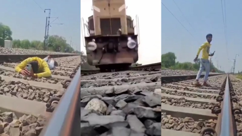उत्तर प्रदेश के उन्नाव में खतरनाक वीडियो सामने आया है। जिसमें एक युवक के मोबाइल लेकर पटरिया के बीच पेट के बल लेट गया। सामने से धड़ाधड़ाते हुए ट्रेन आ रही थी। लेकिन युवक मोबाइल लेकर लेट गया और ट्रेन ऊपर से निकल गई। वीडियो में दिख रहा है कि बाहर खड़ा एक युवक भी मोबाइल से वीडियो बना रहा है। मामला सामने आने के बाद रेलवे पुलिस हरकत में आई।