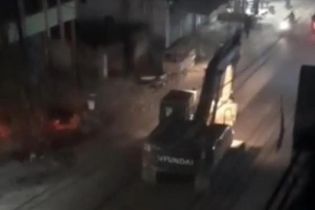 फोटो सोर्स: सीसीटीवी फुटेज, पोकलेन ने कई गाड़ियों को मारा टक्कर