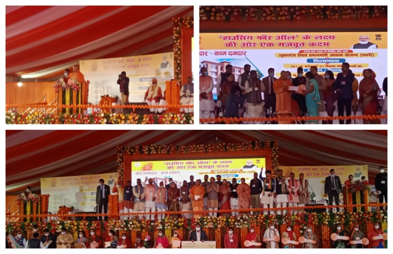 मुख्यमंत्री योगी आदित्यनाथ जनसभा में पहुंचकर पीएम आवास योजना और 157.78 करोड़ की 31 परियोनाओं का लोकार्पण किया। मुख्यमंत्री योगी आदित्यनाथ ने महिलाओं को मकान की चाभी सौंपी और लाभार्थियों को अनुदान दिया। इसके साथ ही मुख्यमंत्री योजना के तहत लैपटॉप दिया गया। इसके साथ अन्य-अन्य योजनाओं के तहत लाभार्थियों को अनेकों लाभ दिया गया।