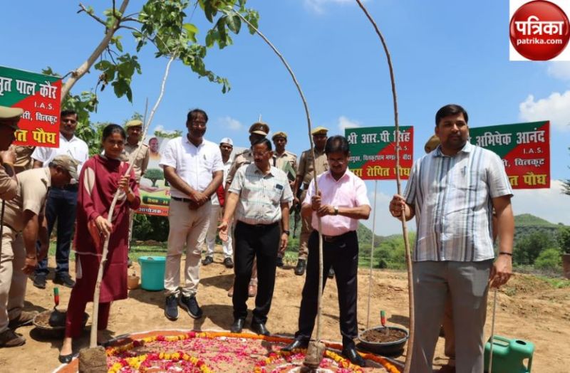Chitrakoot News :चित्रकूट में वृक्षारोपण करते हुए कमिश्नर के साथ अन्य अधिकारी