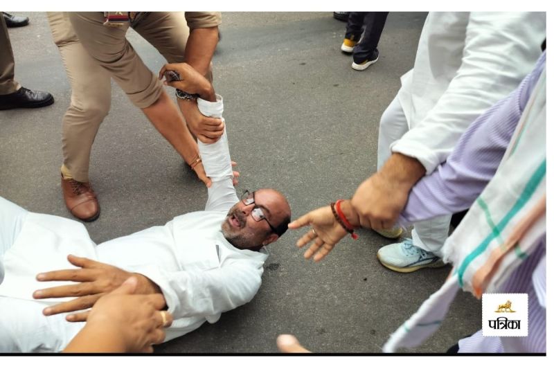 कांग्रेस नेता को सड़क पर घसीटती पुलिस