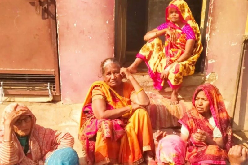 कानपुर में पति की हत्या के बाद घर के बाहर जुटी महिलाएं।