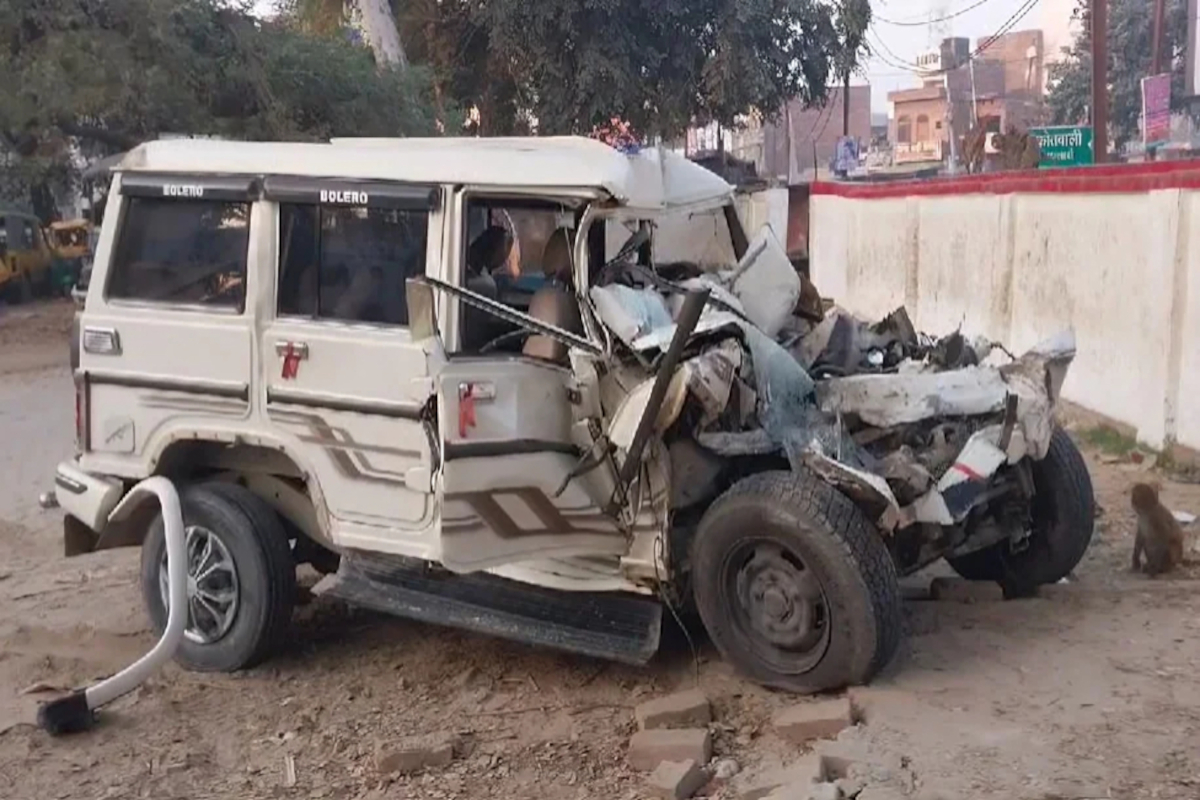 हादसा: तेज रफ्तार बोलेरो, जो एक शादी समारोह से वापस आ रही थी, ने सड़क किनारे खड़ी एक निजी बस को टक्कर मारी।