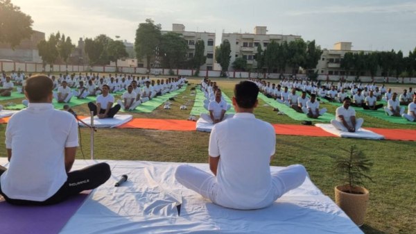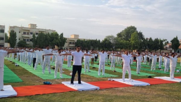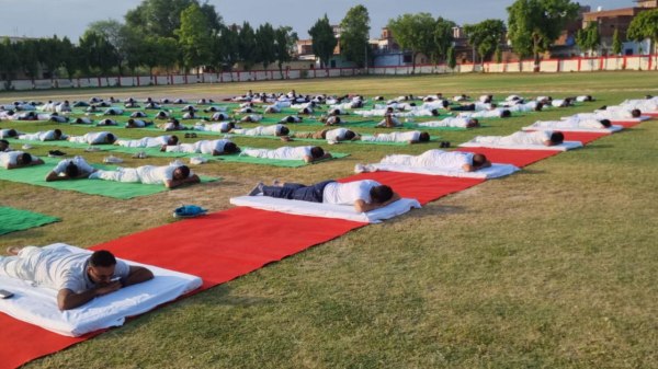 पुलिस लाइन में योगाभ्यास का विहंगम दृश्य