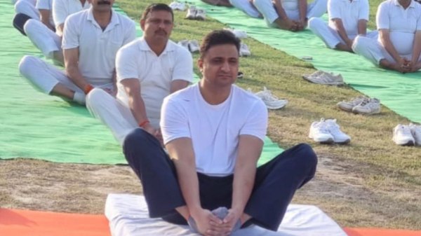 भाजपा नेता और जिला पंचायत अध्यक्ष पुत्र ने योग अभ्यास की फोटो शेयर की