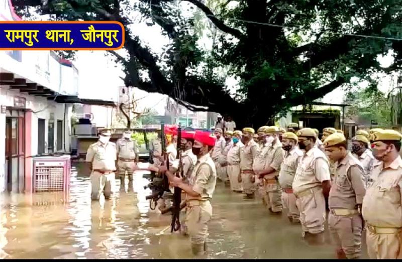 दरअसल कई दिनों से हो रही जोरदार बारिश की वजह से निचले इलाकों में पानी जमा हो गया ही। इसी में रामपुर थाना भी आता है। यहां भी कई दिनों से बरसात का पानी जमा है। किसी तरह थाने में कामकाज चल रहा था। इसी बीच स्वतंत्रता दिवस का पर्व आया तो झंडारोहण की समस्या खड़ी हो गई। थाने में ऐसी कोई जगह नहीं बची जहां राष्ट्रीय ध्वज फहराया जा सके।