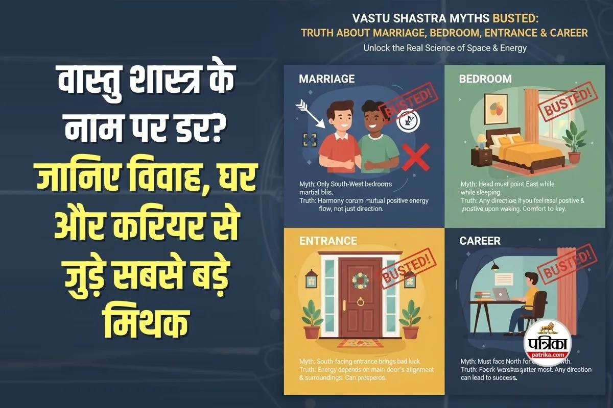 Vastu Myths and Facts : वास्तु शास्त्र को लेकर समाज में वर्षों से डर और भ्रांतियां गहराई से जमी हुई हैं। विवाह में देरी हो, करियर में रुकावट आए या नया घर खरीदना हो—अक्सर हर समस्या का कारण “वास्तु दोष” मान लिया जाता है। अधूरी जानकारी और अफवाहों के चलते लोग अच्छे रिश्ते, बेहतरीन अवसर और सुविधाजनक घर तक छोड़ देते हैं।