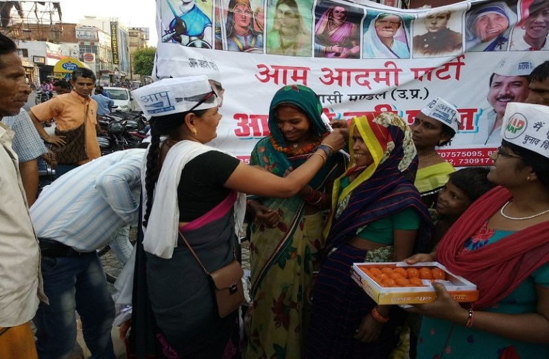 वाराणसी.आम आदमी पार्टी के कार्यकर्ताओं ने मंगलवार को अनोखे ढंग से मजदूर दिवस मनाया है। पार्टी के नेताओं ने गुरुधाम चौराहे पर जाकर महिला श्रमिकों को अंगवस्त्रम देकर उनका सम्मान किया है। महिला श्रमिकों को पहले विश्वास नहीं हुआ कि उनका भी कोई सम्मान कर सकता है बाद में महिला श्रमिकों ने आप नेताओं को धन्यवाद दिया।