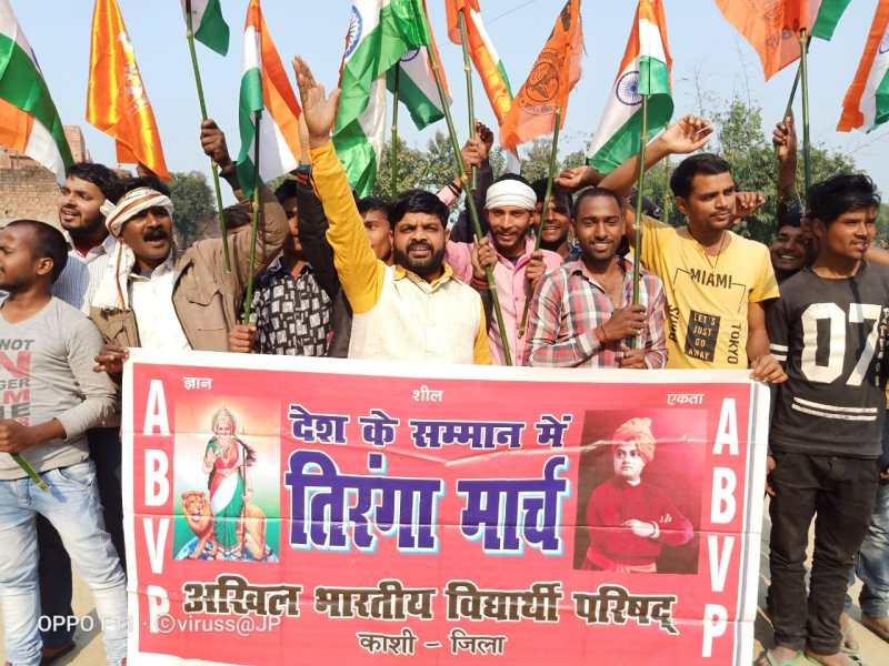 वााराणसी. गणतंत्र दिवस की पूर्व संध्या पर अखिल भारतीय विद्यार्थी परिषद (एबीवीपी) ने शनिवार को तिरंगा यात्रा निकाली। जंसा बाजार से आरंभ होकर कुरसातो गांव तक यात्रा निकाली गयी। एबीवीपी कार्यकर्ता ने जमकर भारत माता की जय के नारे लगाये। कहा देश के लोगों को उन वीर सपूतों की कुर्बानी कभी नहीं भूलनी चाहिए। जिनके बदौलत देश आजाद और और सुरक्षित है।