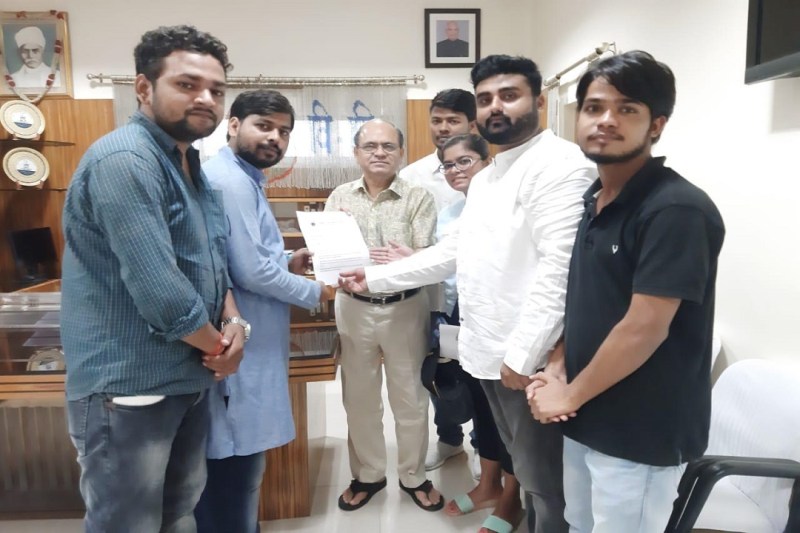 कुलपति को ज्ञापन सौंपते एबीवीपी छात्र