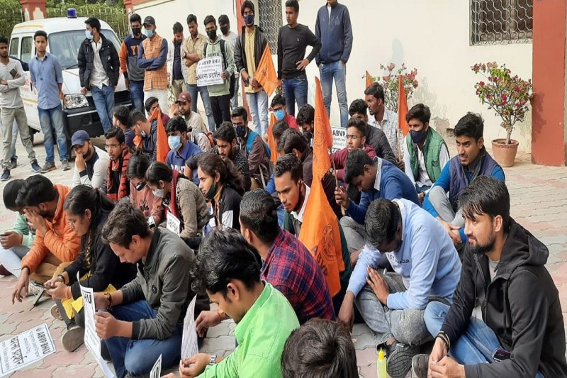 विद्यार्थी परिषद कार्यकर्ताओं का विरोध प्रदर्शन