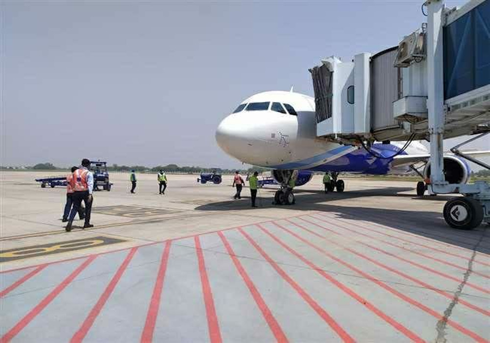 विमानों का संचालन शुरू होने के बाद इस हवाई अड्डे पर पहली फ्लाइट दिल्ली से आई। 10-10 यात्रियों का ग्रुप बनाकर इन्हें बाहर निकाला गया। यात्रियों की थर्मल स्क्रीनिंग के साथ हुई बैग को सैनिटाइज किया गया। माइक पर लगातार सोशल डिस्टनसिंग का पालन करने के लिए अनाउंस भी किया जाता रहा।